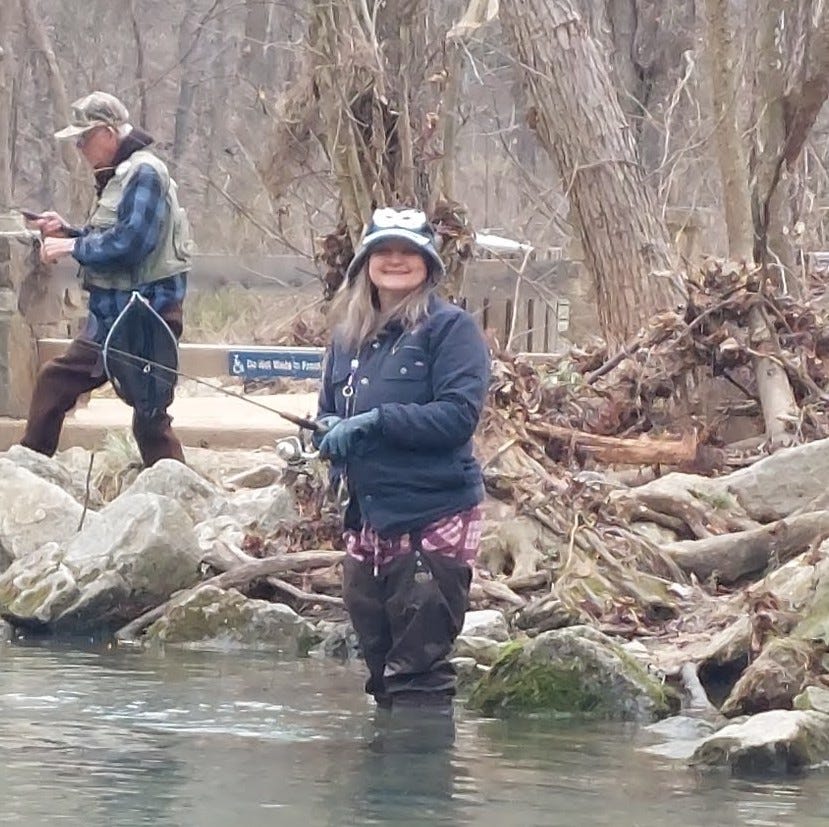 Note about this image: My husband took this on March 19, 2026, during my first-ever attempt to fish for trout in a river. The previous day was my entry into trout fishing by casting from dry ground at the river’s edge.